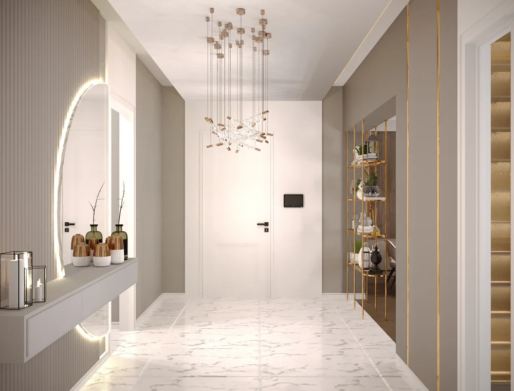 B.A. Antre Tasarımı, evin ilk izlenimini belirleyen, şıklığı ve işlevselliği bir araya getiren özel bir projedir. Ilmiora Design olarak, antreleri yalnızca geçiş alanı olarak değil, karakterinizi ve yaşam tarzınızı yansıtan şık bir giriş noktası olarak tasarlıyoruz. Bu projede, zarif dokular, aydınlatma detayları ve akıllı depolama çözümleriyle hem estetik hem de kullanışlı bir alan oluşturduk. Antre, evinize giren herkesi sıcak ve davetkâr bir atmosferle karşılayacak şekilde planlandı.