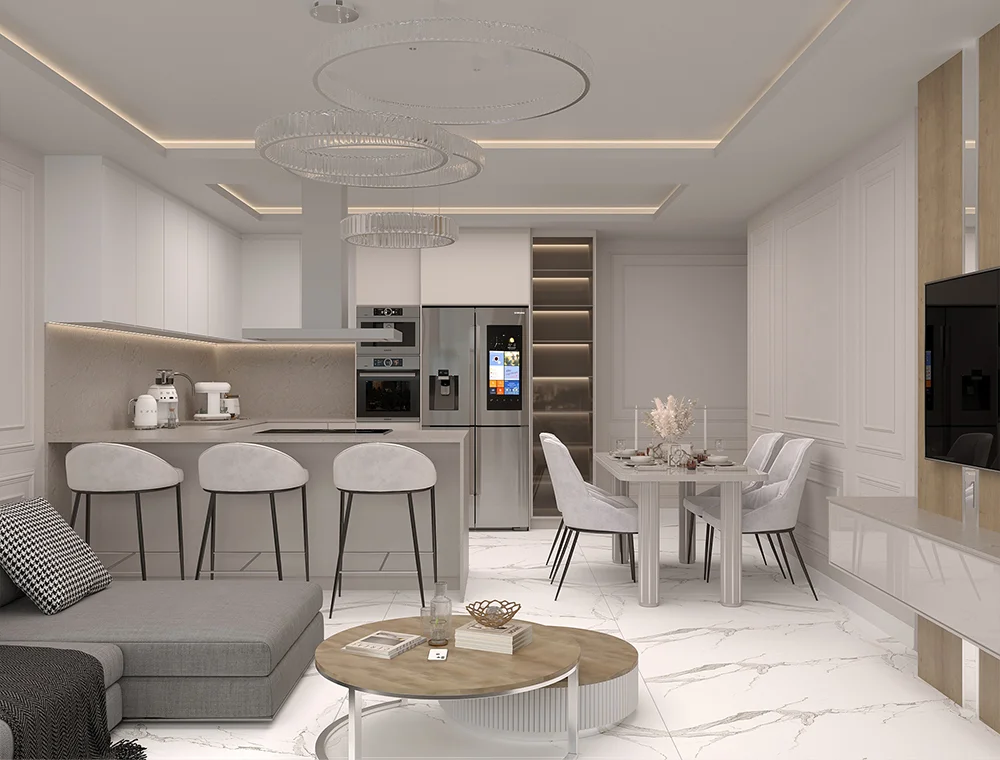 - Fonksiyonelliği artıran mutfak adası ve özel çözümler
