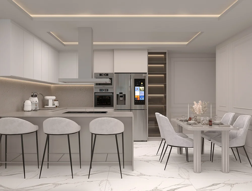 N.A. Mutfak Tasarımı, fonksiyonelliği ve estetiği bir araya getirerek mutfakta geçirilen zamanı daha keyifli ve verimli hale getiriyor. Modern, ergonomik ve kullanıcı dostu çözümlerle tasarladığımız bu alan, mutfağınızı sadece yemek pişirme değil, aynı zamanda sosyal bir yaşam alanına dönüştürüyor.