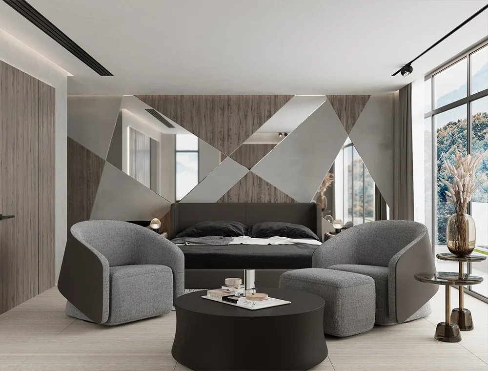 Otel odası tasarımımız, misafirlerinizin konforunu ön planda tutarak estetik ve fonksiyonelliği birleştiriyor. Modern ve şık çizgilerle oluşturduğumuz bu tasarım, rahatlatıcı bir ortam yaratmak için sade ama etkileyici detaylarla şekillendirildi. Misafirlerinizi ağırlamak için her ayrıntıyı özenle düşündük; konforlu yataklar, ergonomik mobilyalar ve akıllı depolama çözümleriyle odaların verimli kullanımını sağladık.