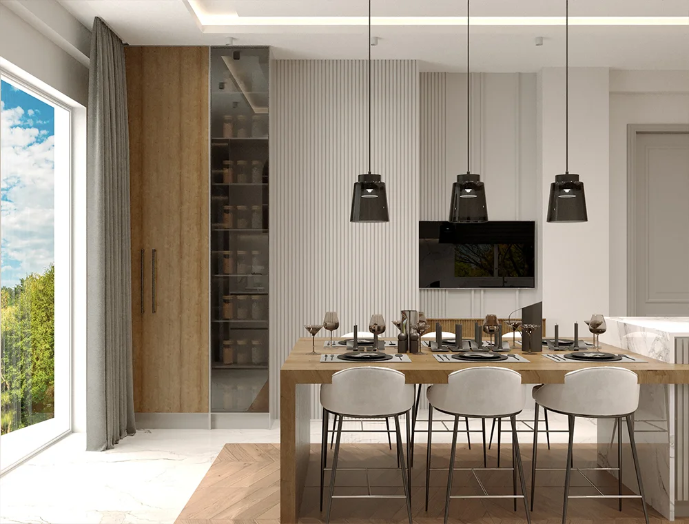 Alanı verimli kullanmak için akıllı depolama sistemleri, açık raflar ve çok amaçlı mobilyalar tasarlıyoruz.