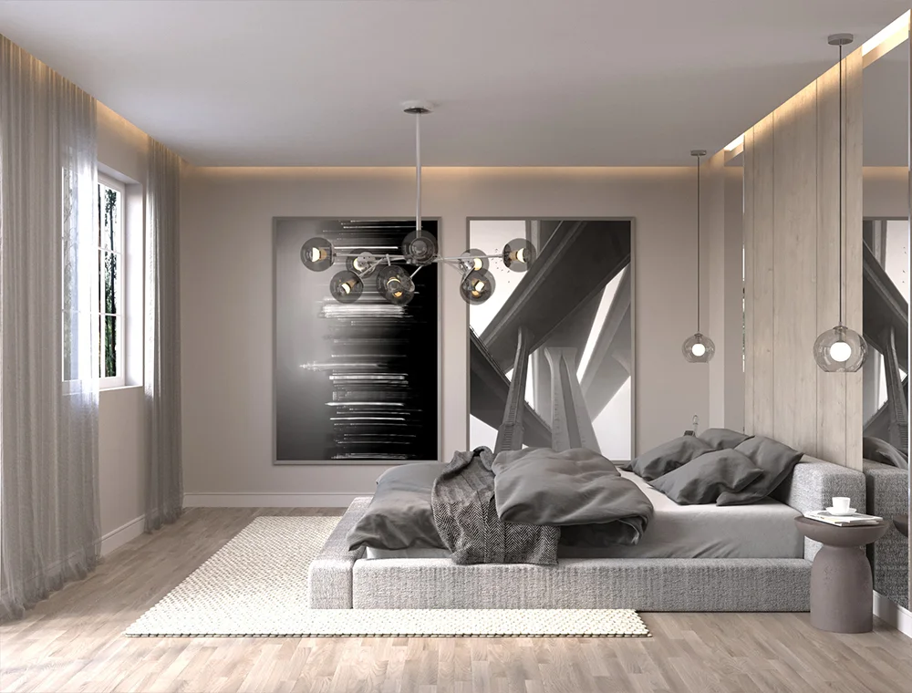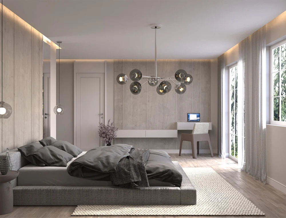 S.U. Yatak Odası Tasarımı, konfor ve estetiği bir araya getirerek huzurlu bir yaşam alanı sunuyor. Dinlendirici bir atmosfer oluşturmak için doğal renk tonları, ergonomik mobilyalar ve doğru aydınlatma çözümleriyle tasarım planlandı. Fonksiyonelliği ön planda tutarak, akıllı depolama sistemleri ve minimalist detaylarla yatak odanızı hem şık hem de kullanışlı hale getiriyoruz.
