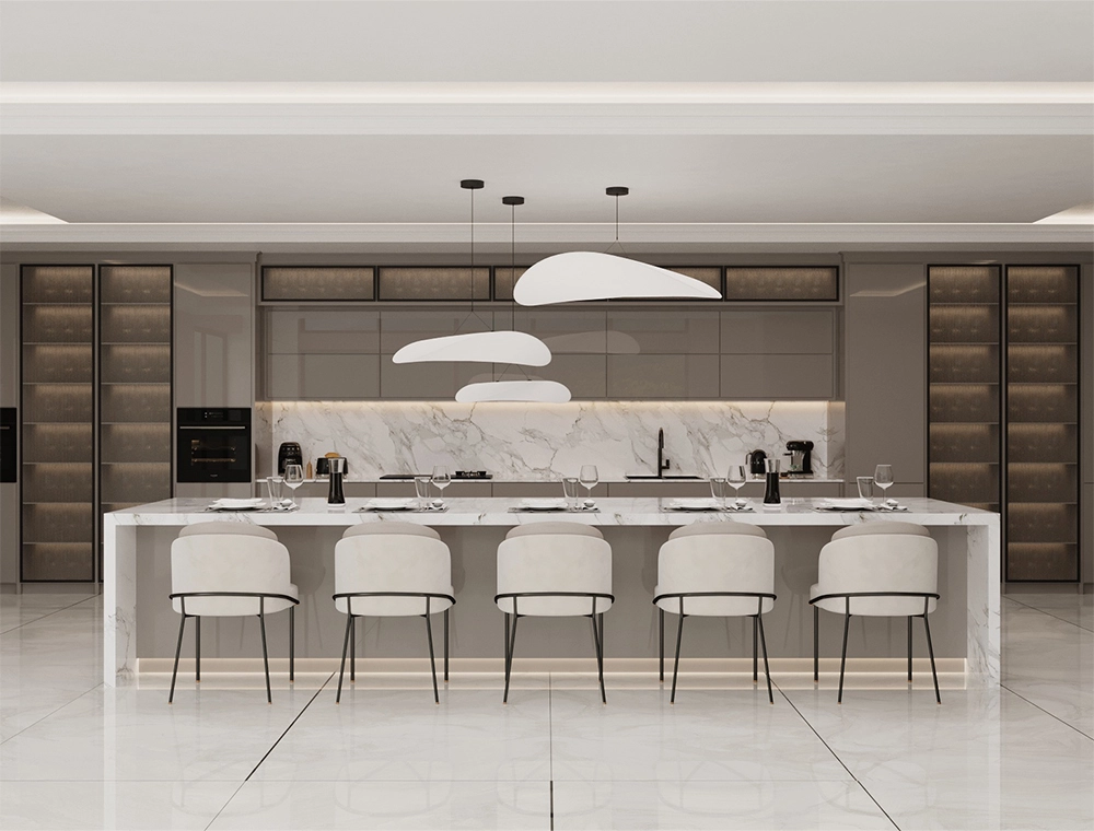 S.Y. mutfak tasarımı, estetik ve işlevselliği bir araya getirerek modern yaşamın ihtiyaçlarına uygun şekilde tasarlandı. Ergonomik yerleşim planı, akıllı depolama çözümleri ve yenilikçi mutfak teknolojileriyle hem konforlu hem de verimli bir alan oluşturuldu.